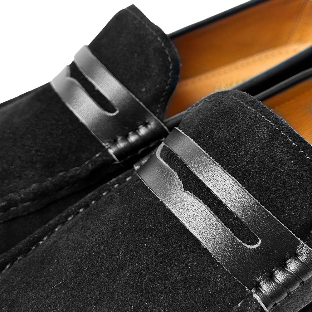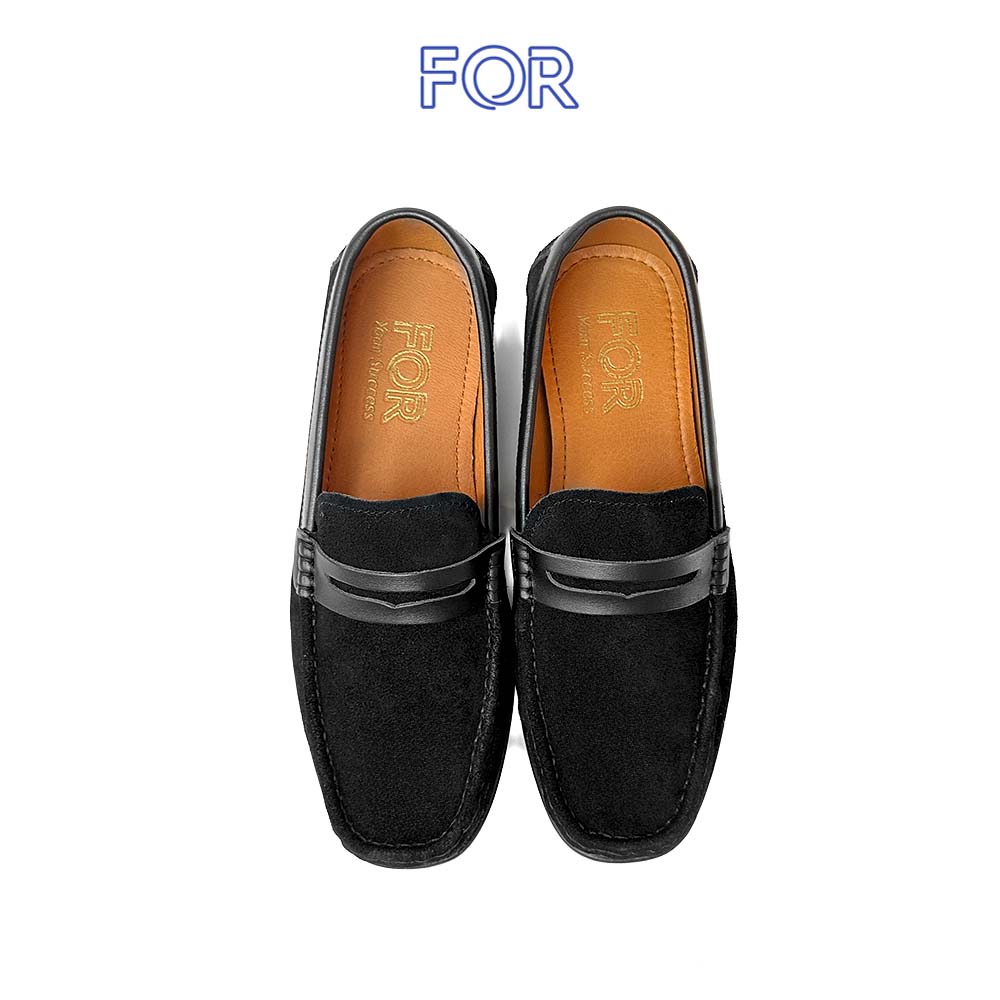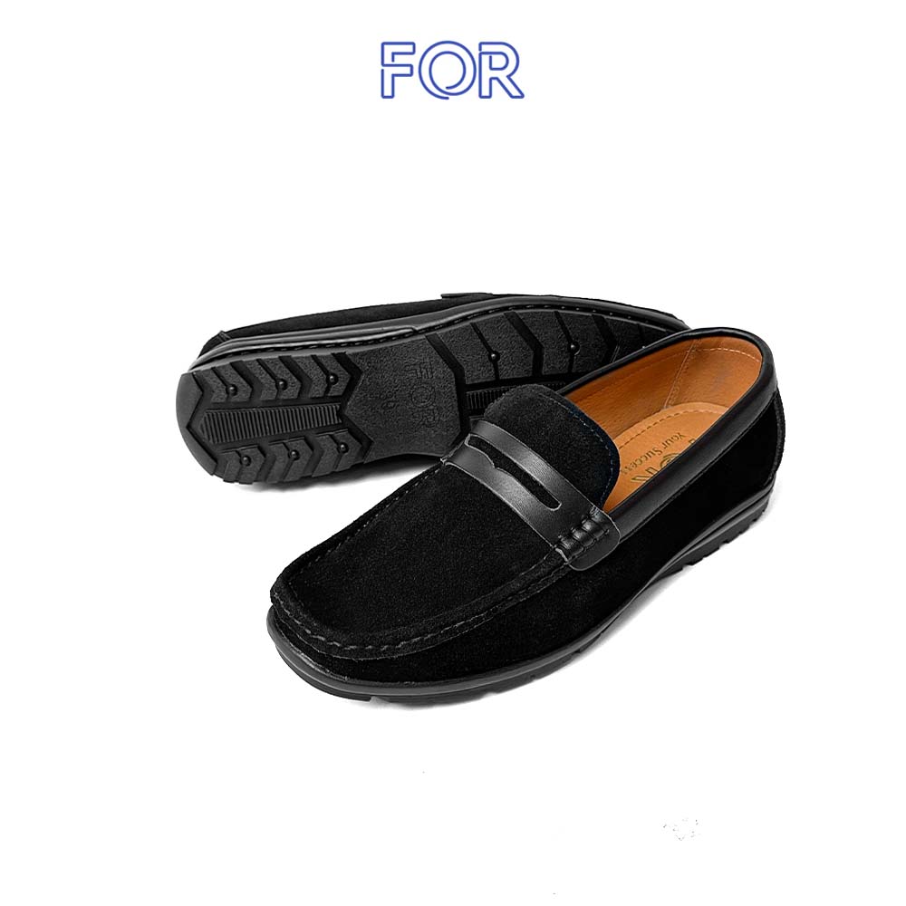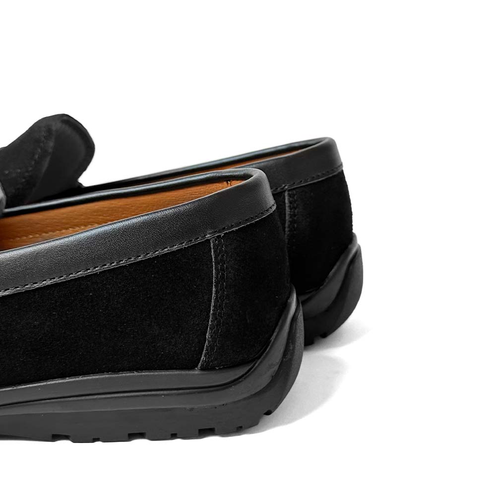 GIÀY LƯỜI MOCCASIN DA BÒ LỖ THOÁNG MÀU ĐEN MF48