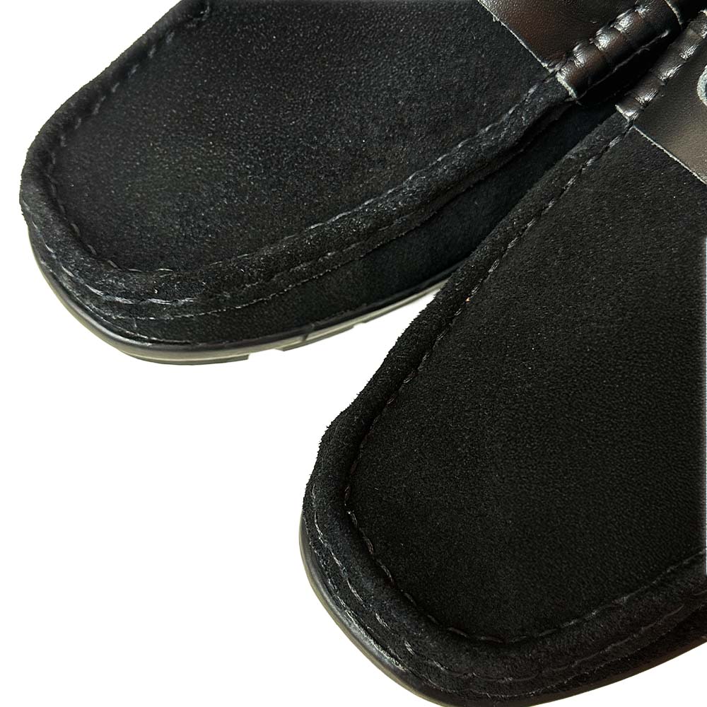 GIÀY LƯỜI MOCCASIN DA BÒ HỌA TIẾT LỖ THOÁNG MÀU ĐEN MF51